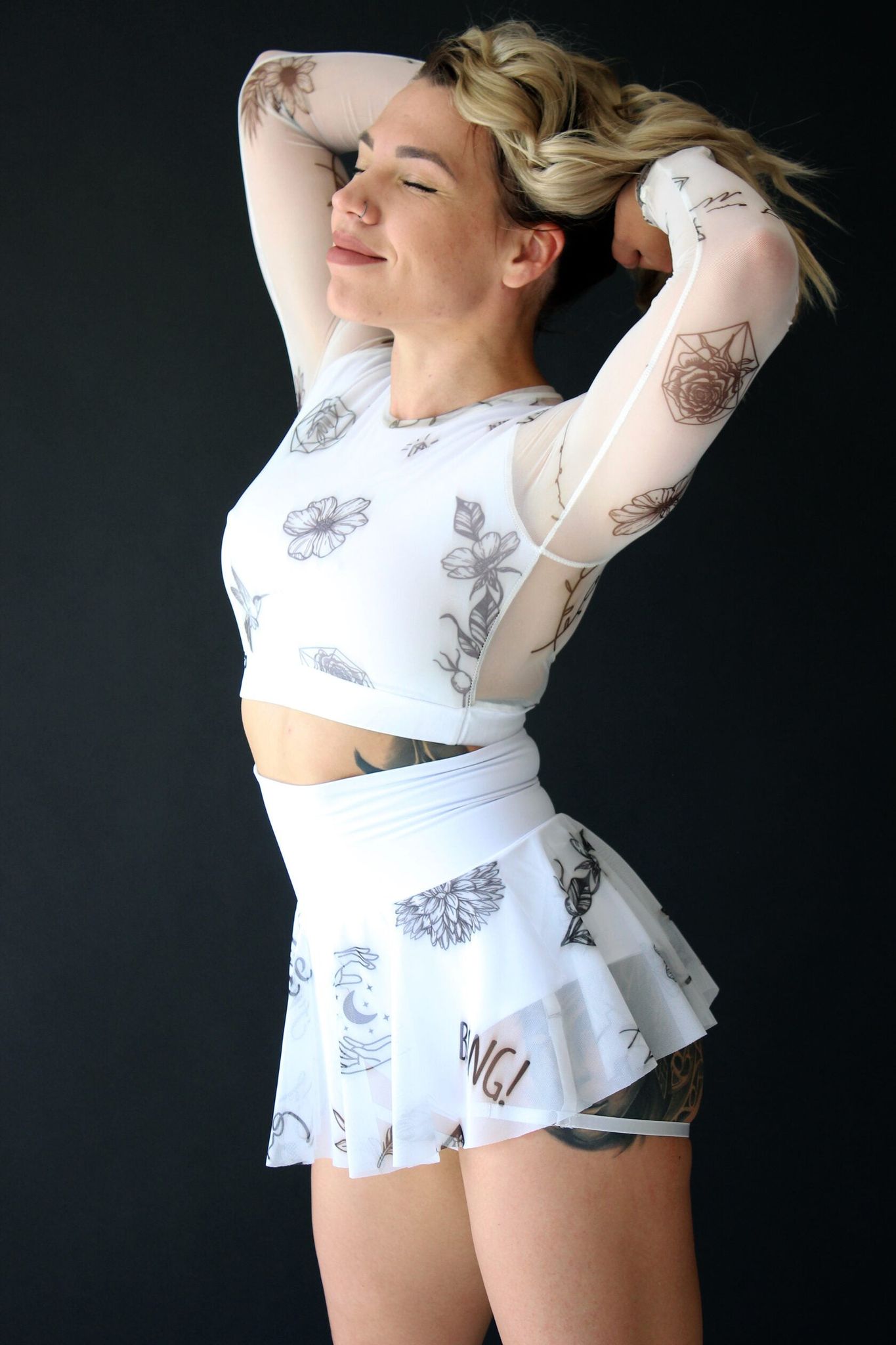 FABRIC 95% polyester, 5% elastane (Biflex matte). 95% polyester, 5% elastane (Stretch mesh).