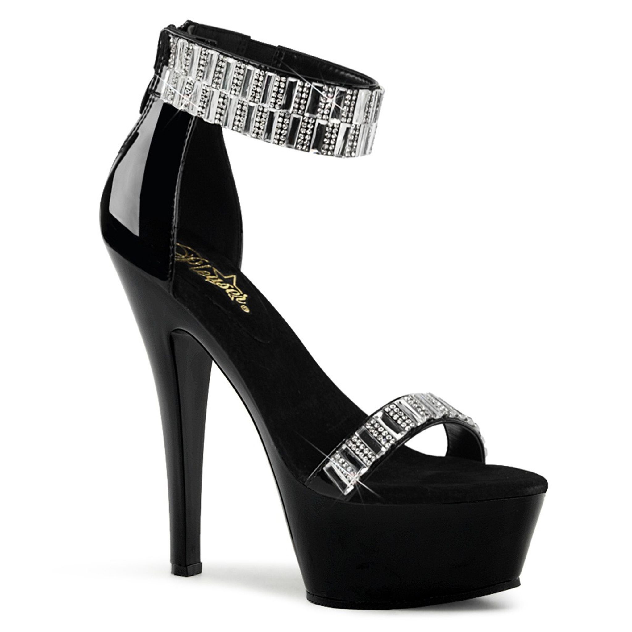 6" (15.2cm) Heel, 1 3/4" (4.5cm) Platform Closed Back Sandal Featuring Rhinestone and Mirrors Embellished All Over Ankle Cuff & Toe Strap, Back Zip Closure