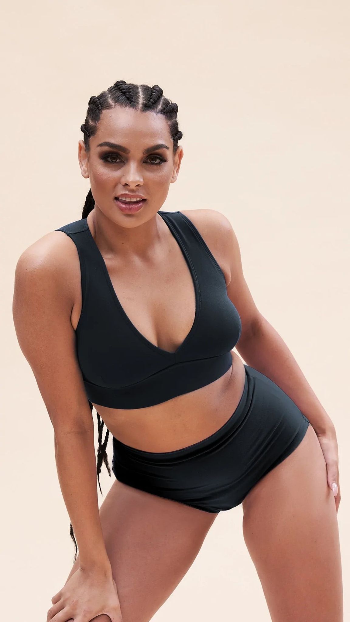 LUNALAE Courtney V Neck Top Recycled BLACK