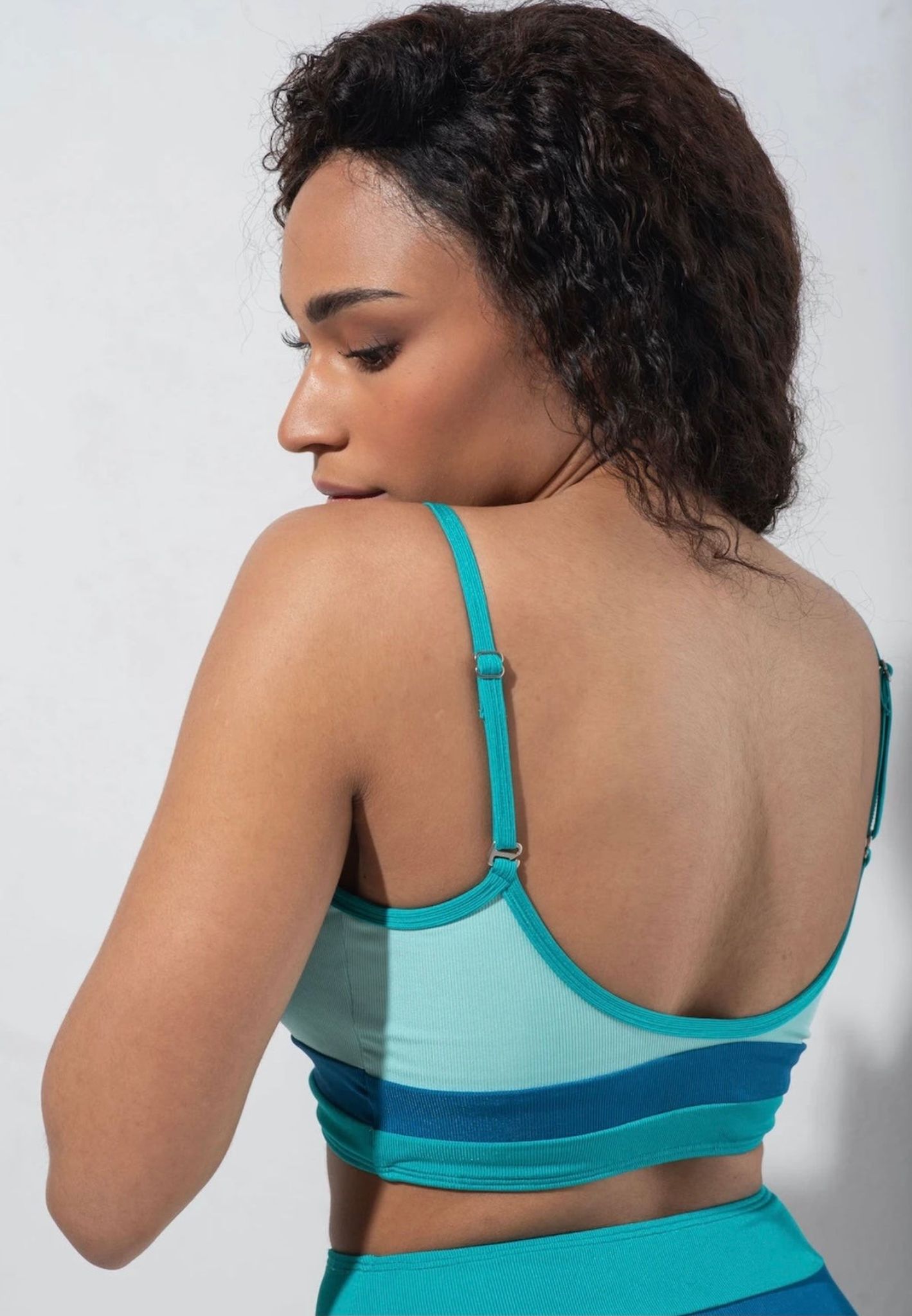Our love for nature-inspired us for this beautiful sports tank top. We’ve put all the shades of ocean blue in the Peace top. It is made from THE smoothest shiny rib material and features regular coverage at the front and a low cut back. It is completed with adjustable over the shoulders thin straps that can unhook and be placed on top of each other to offer you an X style back. It also doubles as a tank top, you are welcome!