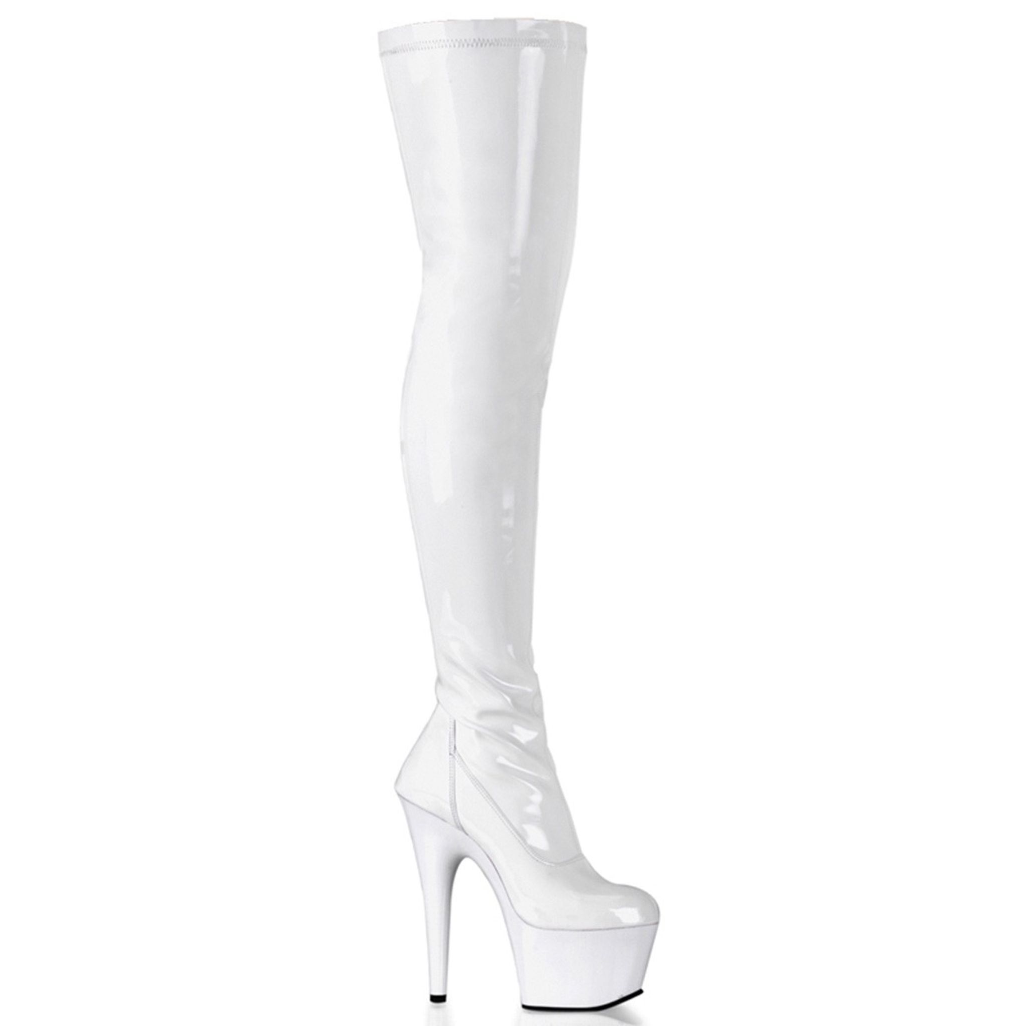 7" (17.8cm) Stiletto Heel, 2 3/4" (7cm) Platform Plain Stretch Platform Thigh Boot, Full Inner Side Zip Closure