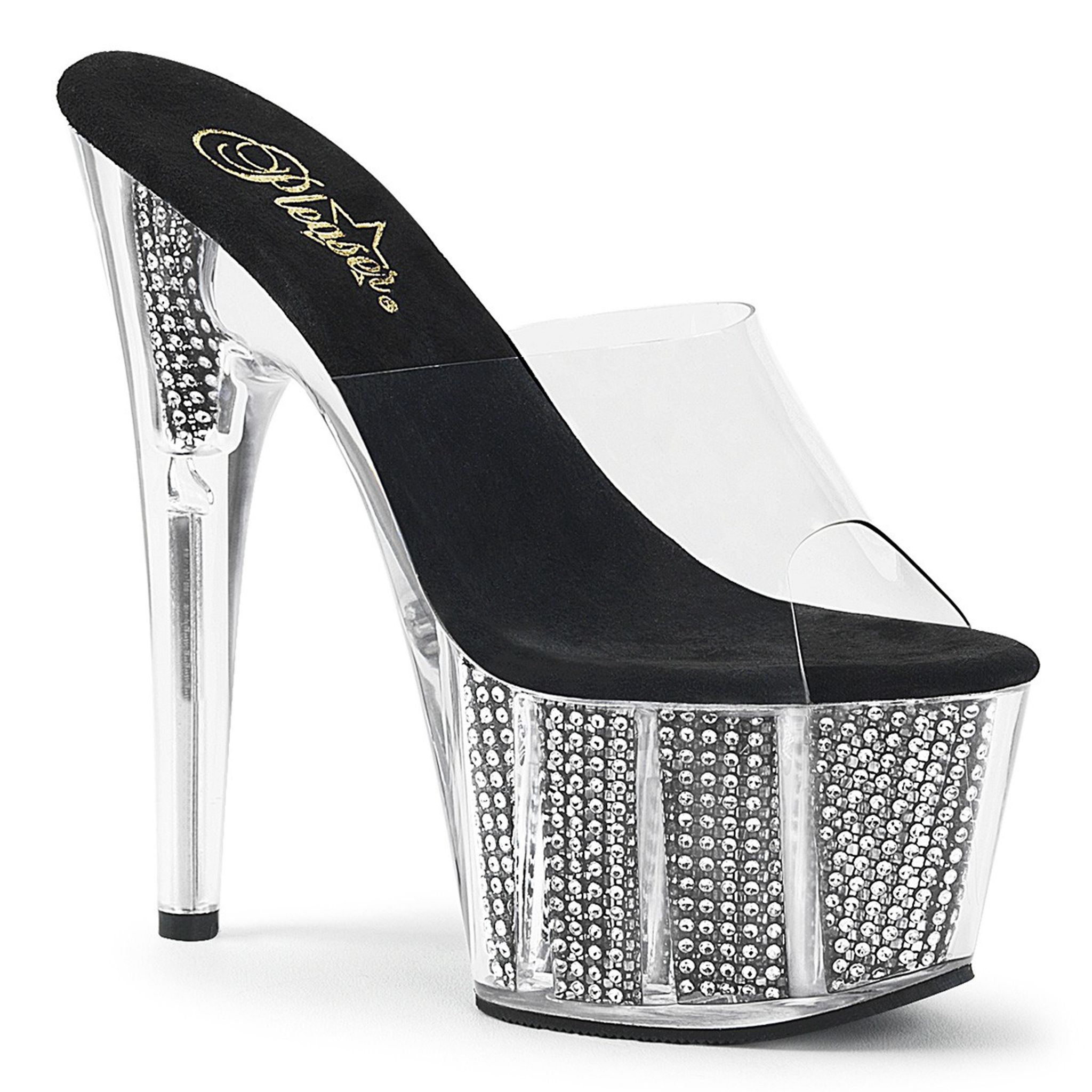 7" (17.8cm) Stiletto Heel, 2 3/4" (7cm) Platform Slide Featuring Chrome Plated, Simulated Rhinestone Filled Bottom