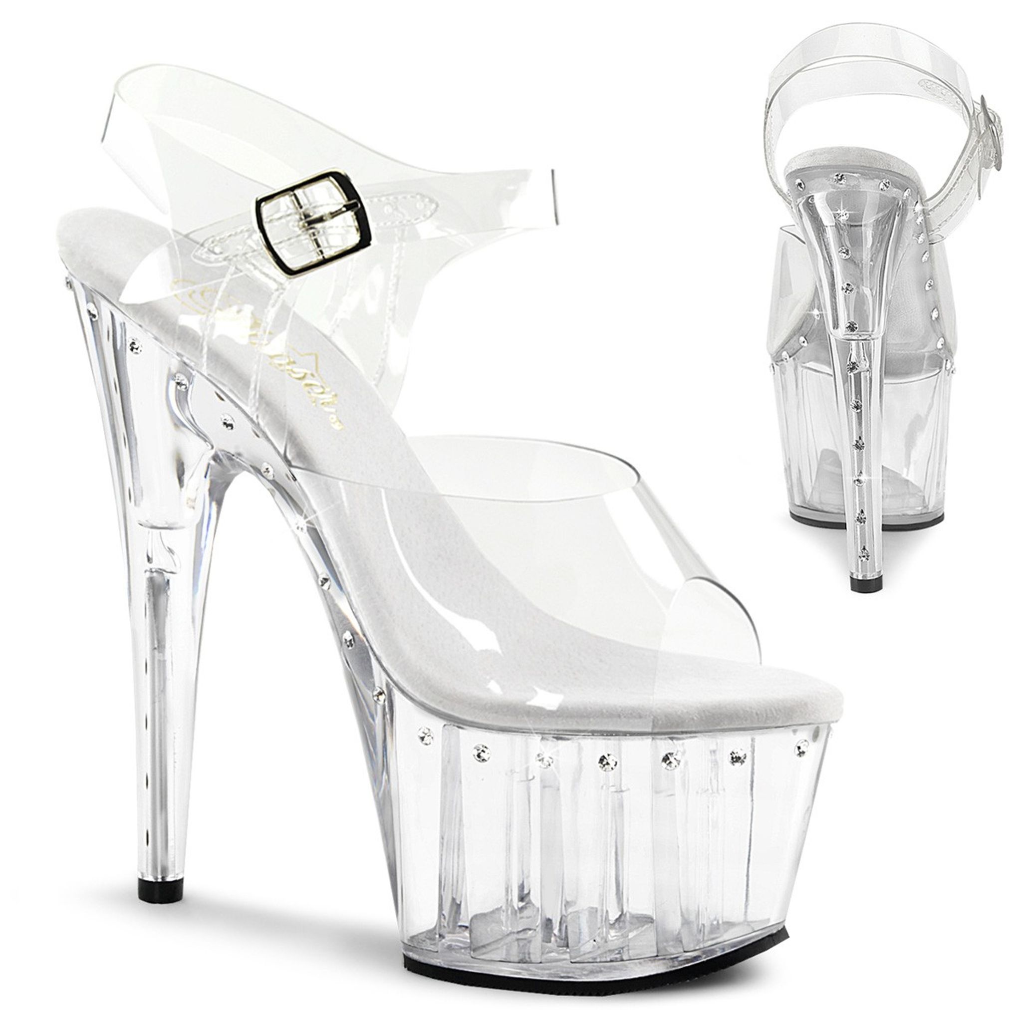 7" (17.8cm) Stiletto Heel, 2 3/4" (7cm) Platform Ankle Strap Sandal Featuring 1 Line Rhinestone on Platform & Heel