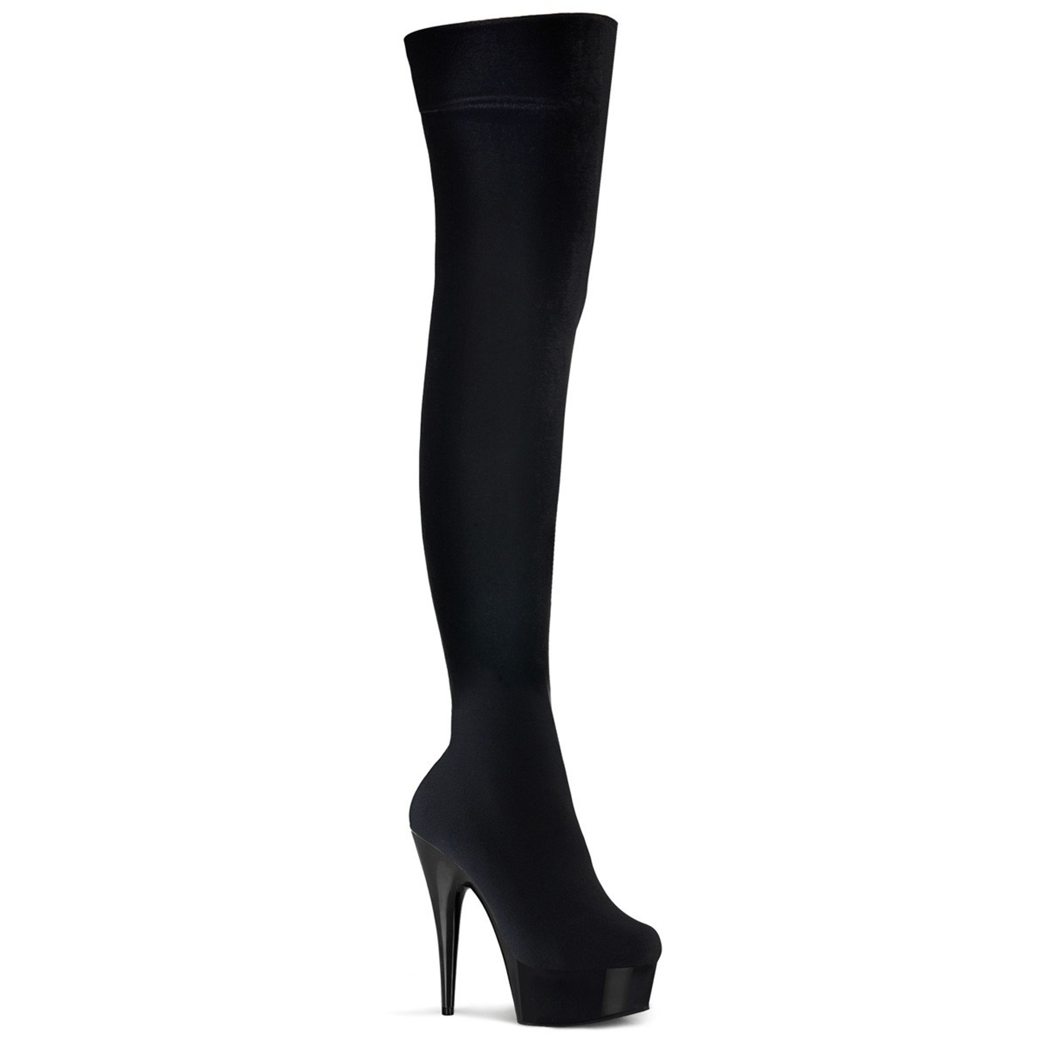 6" (15.2cm) Stiletto Heel, 1 3/4" (4.5cm) Platform Stretch Thigh High Boot, No Zip Closure
