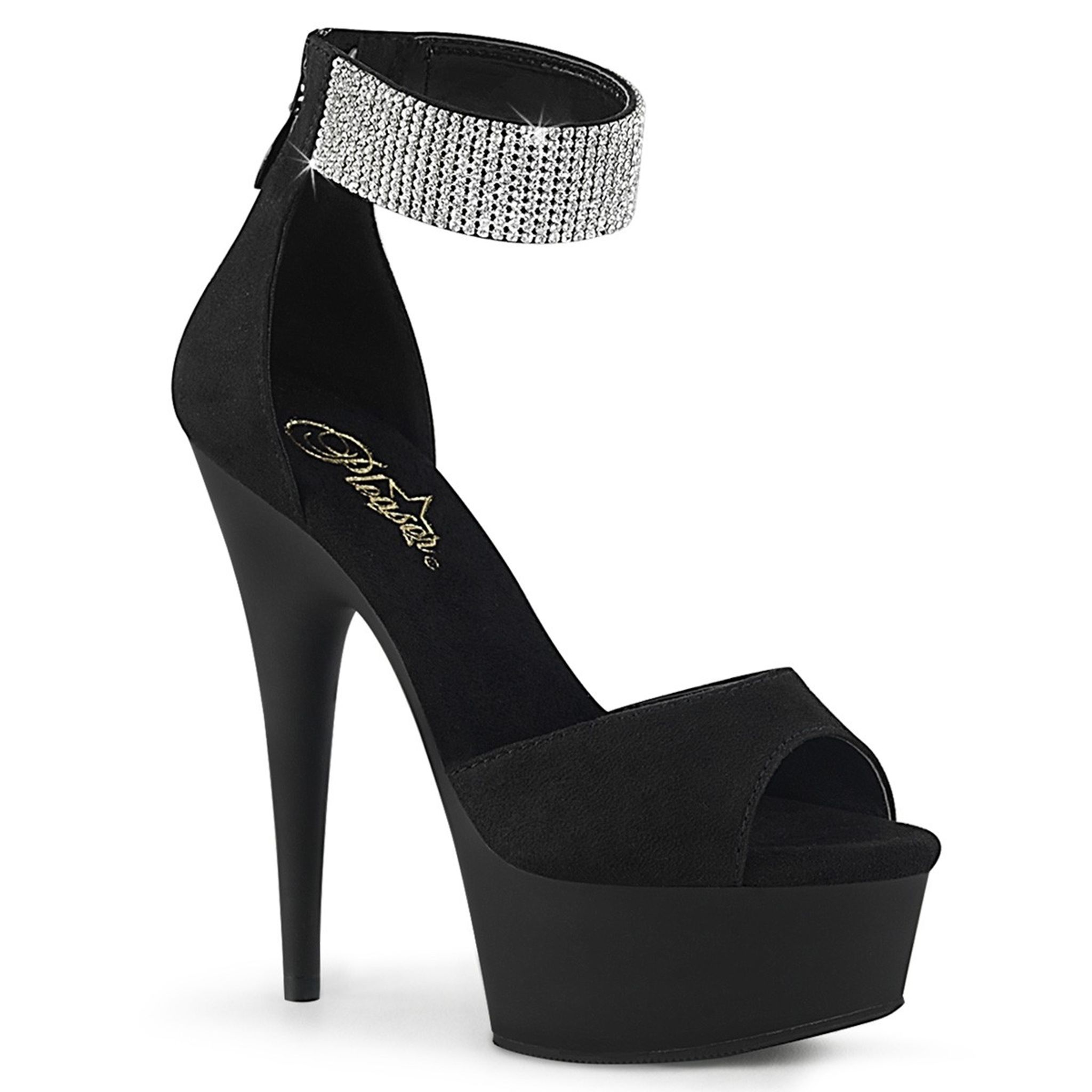 6" (152mm) Heel, 1 3/4" (45mm) Platform Open Toe d'Orsay Sandal Featuring Rhinestone Embellished Ankle Cuff, Back Zip Closure