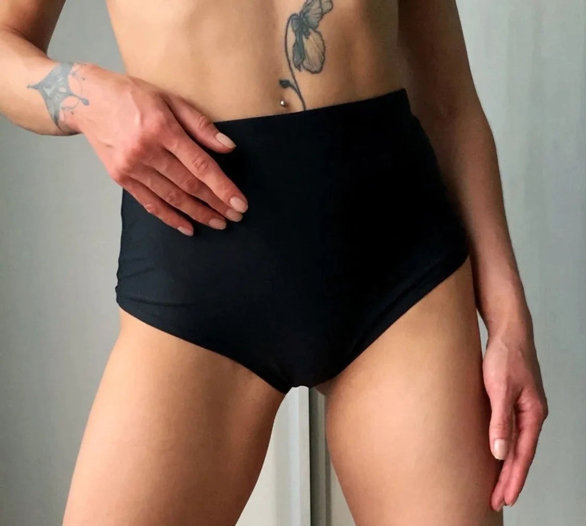 DESCRIPTION Classic high waist. Small assembly on the buttocks. The width of the gusset is 8 cm. The shorts stretch in two directions.