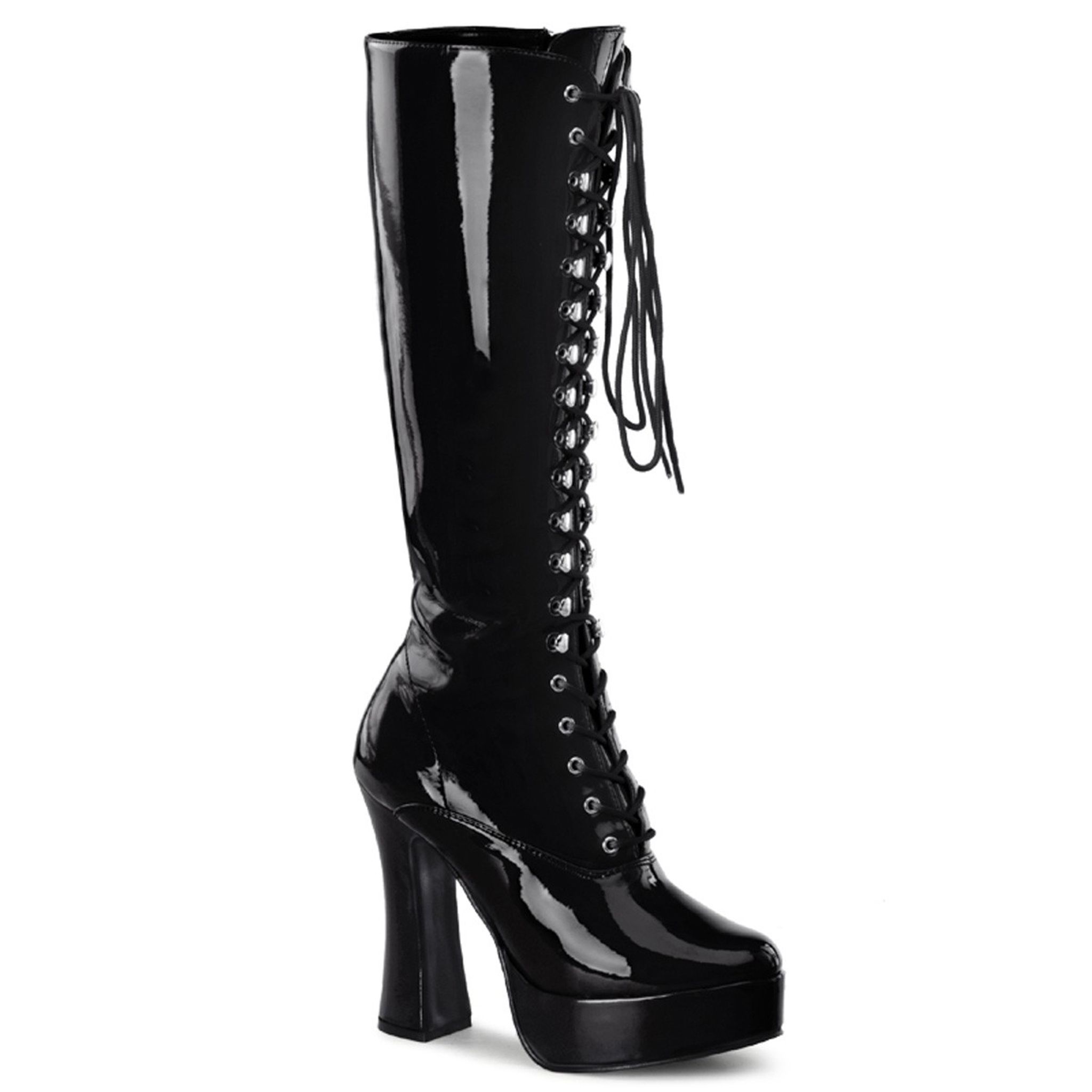 5" (12.7cm) Stack Heel, 1 1/2" (3.8cm) Platform Knee Boot with Lace Front Detail, Full Inner Side Zip Closure