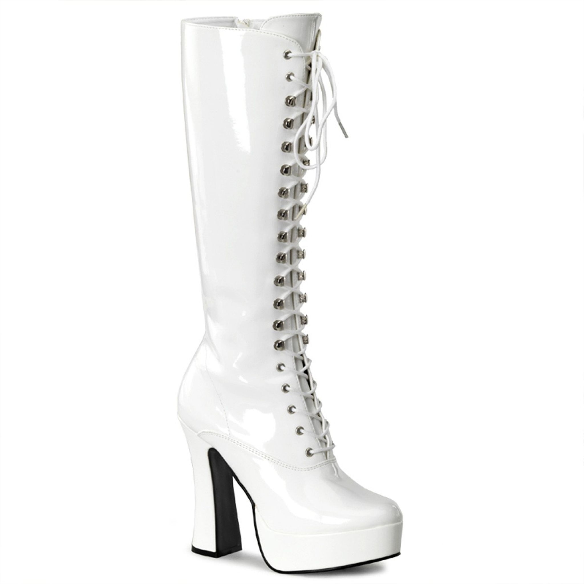 5" (12.7cm) Stack Heel, 1 1/2" (3.8cm) Platform Knee Boot with Lace Front Detail, Full Inner Side Zip Closure