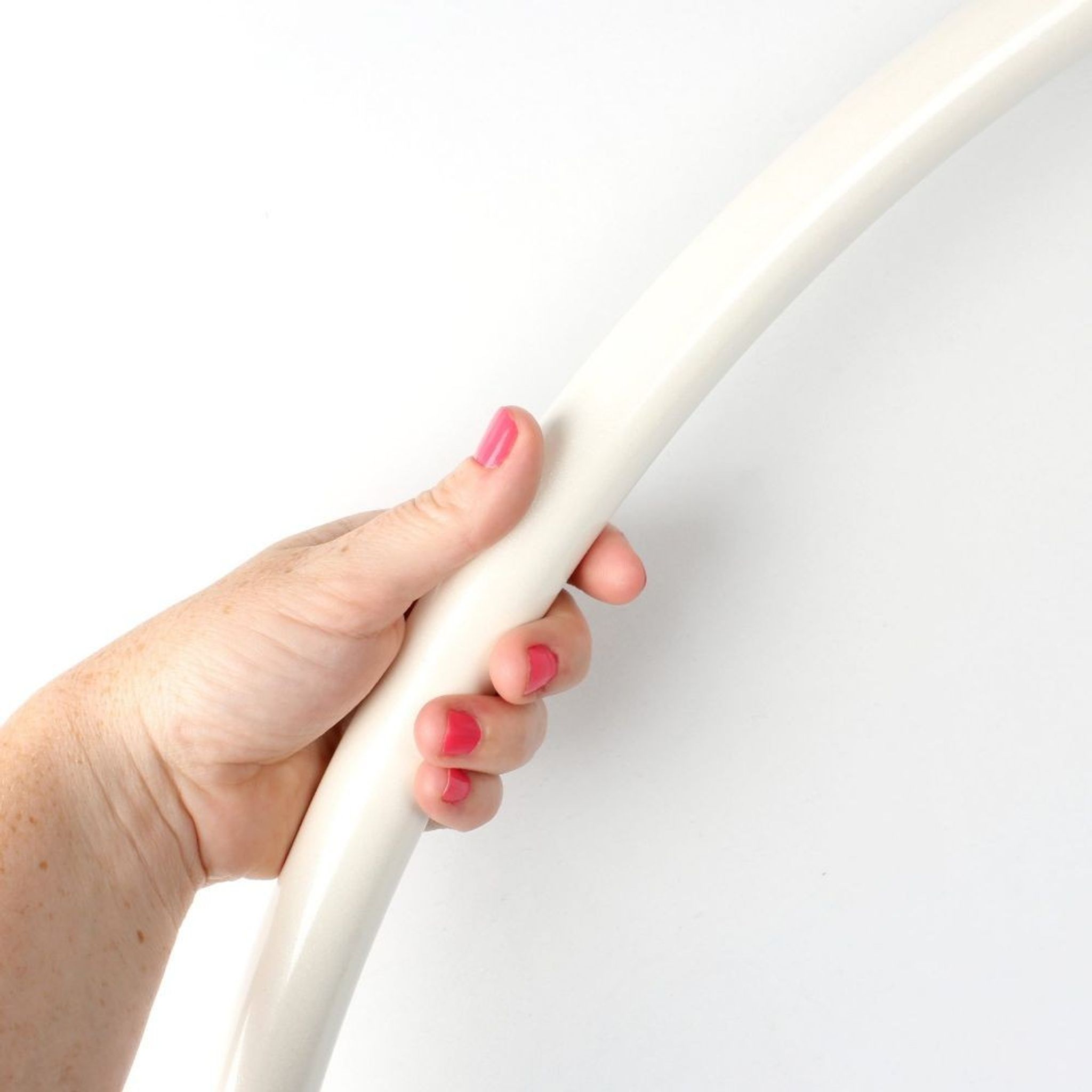 Sizing: If you are unsure which size you need, sit on a chair and measure from the seat to the top of your head, then add 10cm (eg: chair to top of head is 80cm, then you need a 90cm aerial hoop). For more information on getting the right sized hoop.