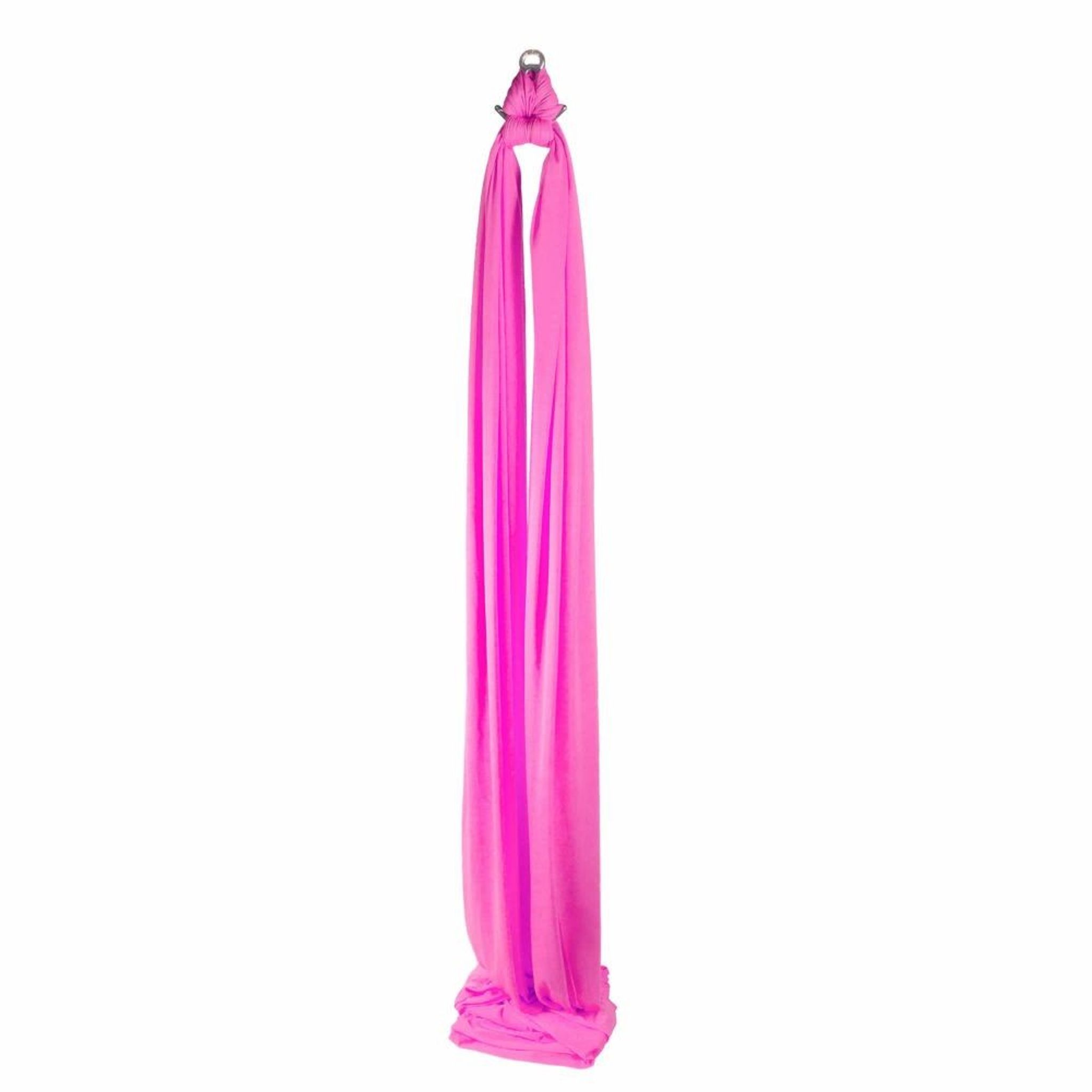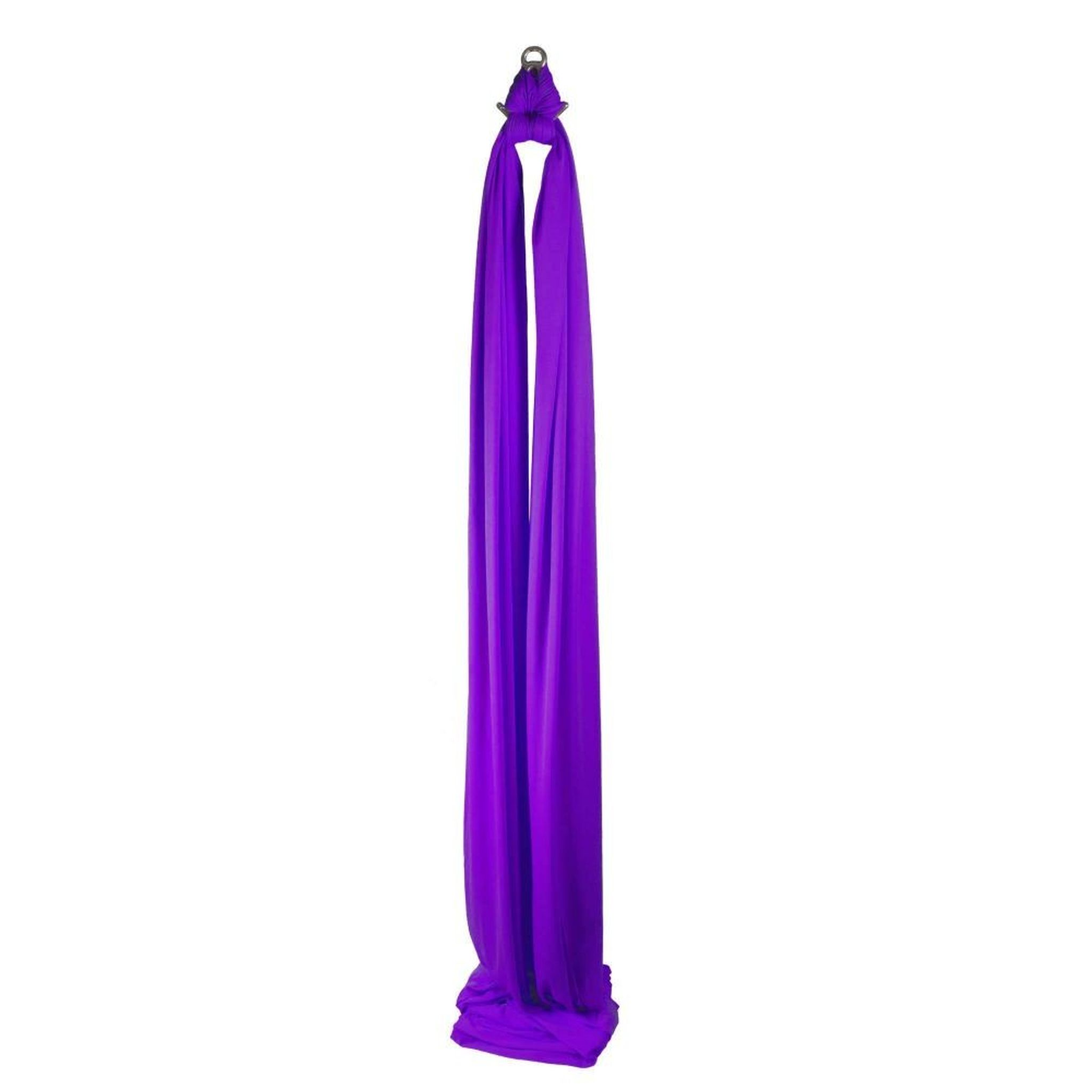 Our very own high quality, professional (medium stretch) aerial silk (also known as an aerial fabric or tissus) made in the UK. Available in various lengths. Please note the size listed is the total length of the silk. As aerial silks are rigged from the centre the working length is a little under half the total length. Working load limit: 128kg.