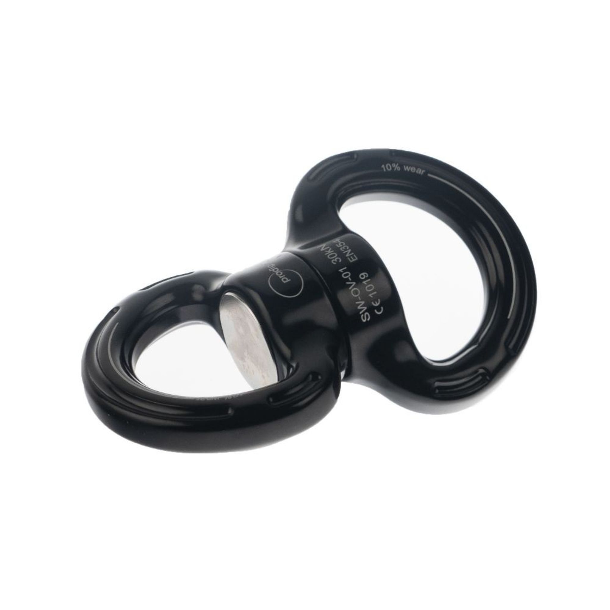 This large swivel can hold its own against most others out there with a MBS of 30kN, and the large eyes on either end mean you can clip any number of things into it. (one at a time though) You can even fit a whole polyester strop through it! The great benefit of this is that you can eliinate other metal compents from your rigging, saving height, money, and increasing longevity by reducing wear.