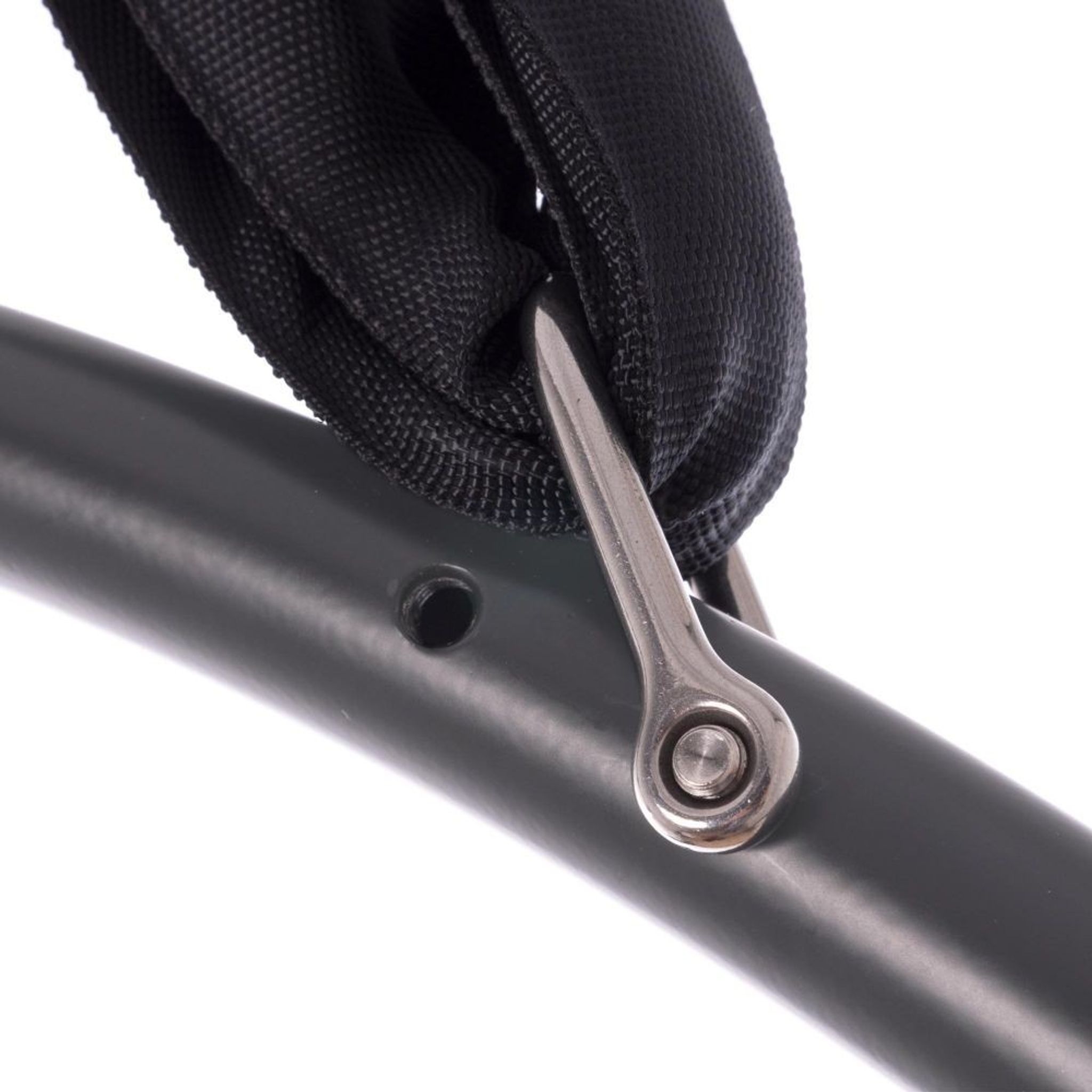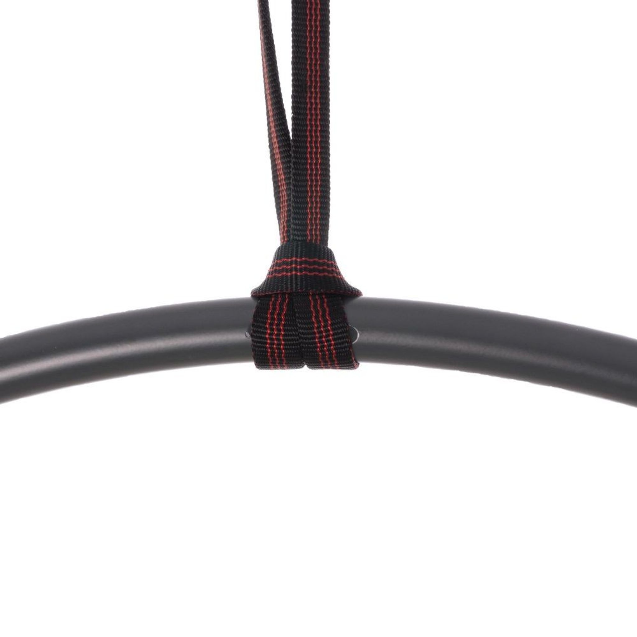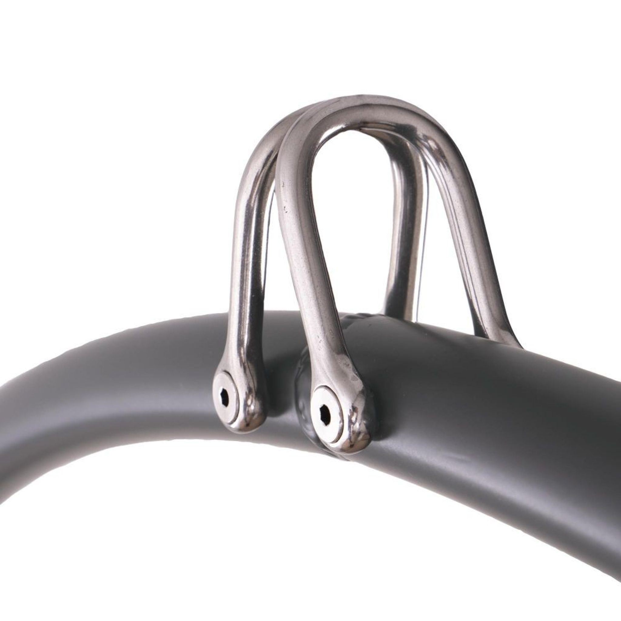 The way in which the shackles attach also allow you to clip your carabiners parallel to the hoop, which many performers prefer, or do away with carabiners entirely, by attaching the shackle directly to your polyester strop. The same goes for any internal points, a hand loop strap is much more comfortable to use without the carabiner at the top, and there’s no need to lose length from it by choking around the hoop.