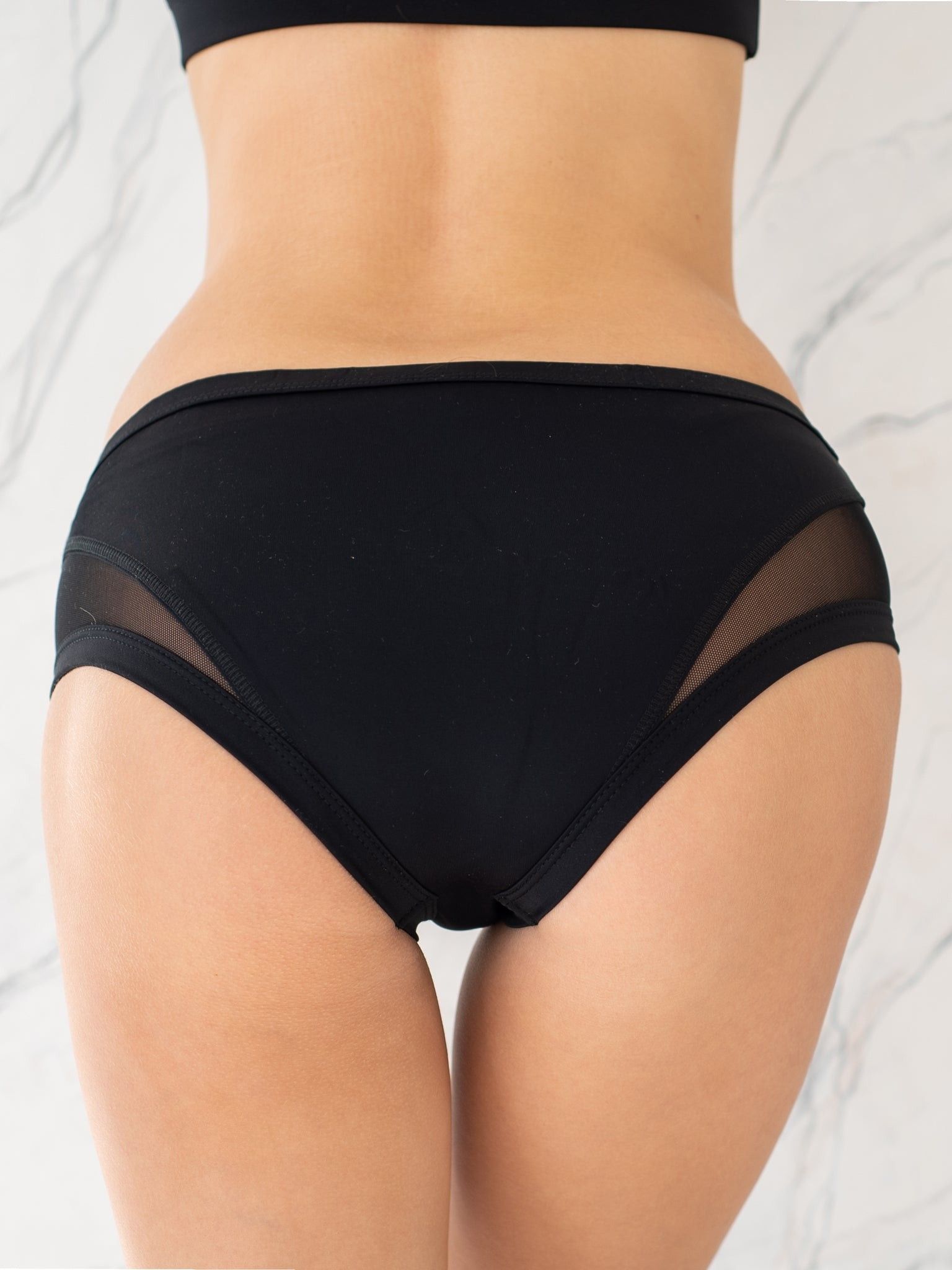 Elegant garment showing the figure to full advantage due to elements made of elastic knit-wear fishnet. Low-waisted shorts (soft elastic band stitched in the waistband to avoid slipping down and twisting).