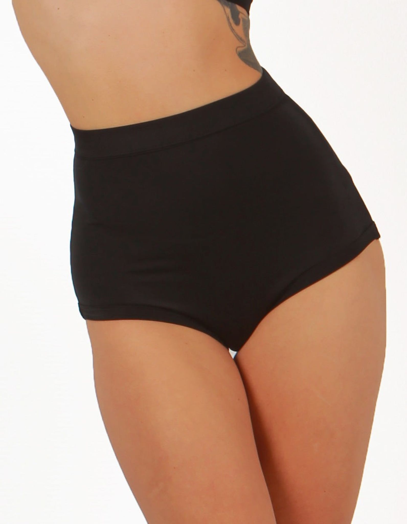 High waist Pin Up shorts. A soft wide elastic band is sewn into the belt.