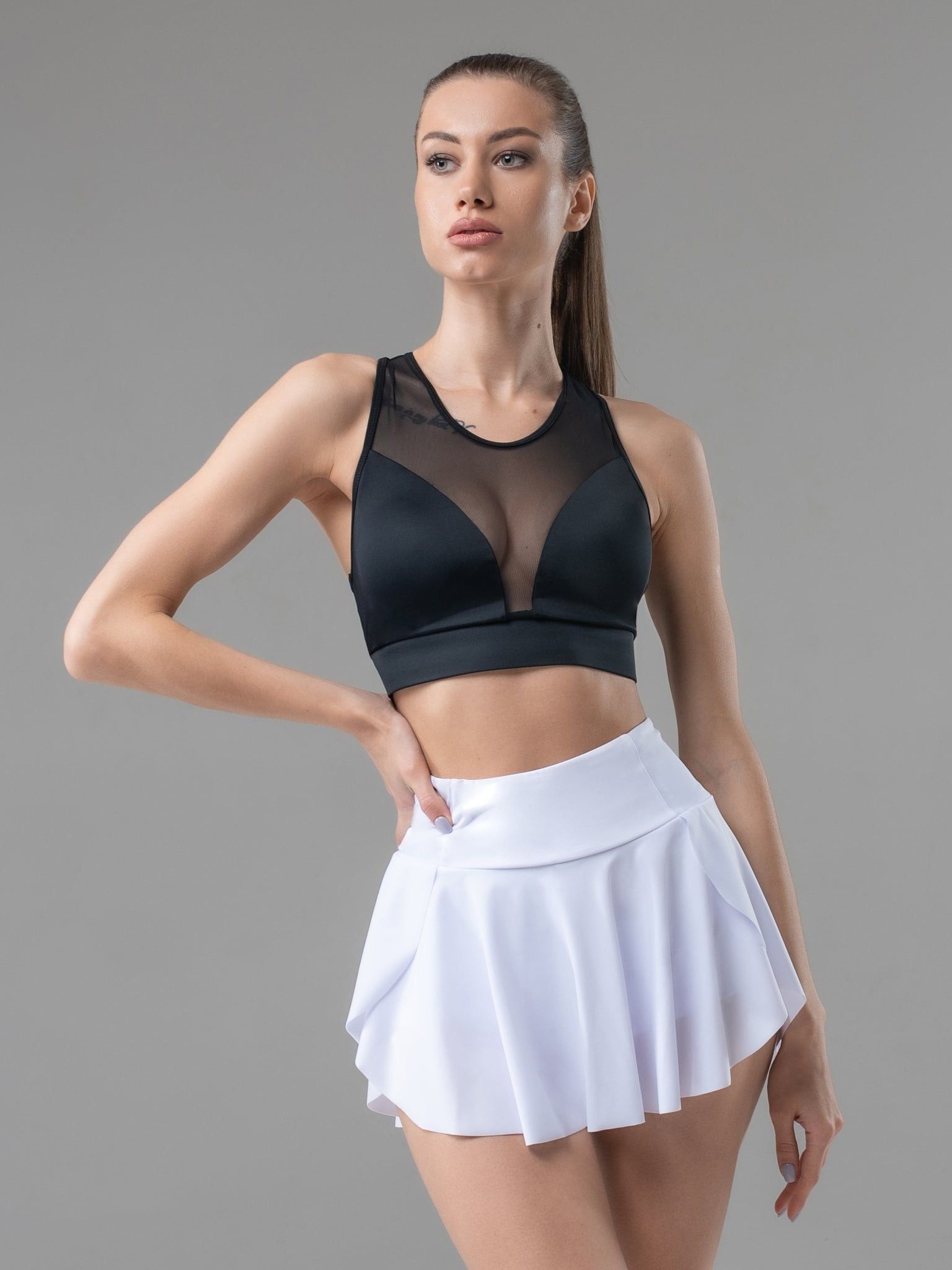 Lined top with cups. The model features a comfortable fit across any chest shape. Wide straps and a 5cm elastic band under the bust guarantee a perfect fit and support. If you have been looking for a high-quality and stylish sports top for all occasions, this is it. A stylish base, worked out to the smallest detail, will become the basis for many sports and dance looks.