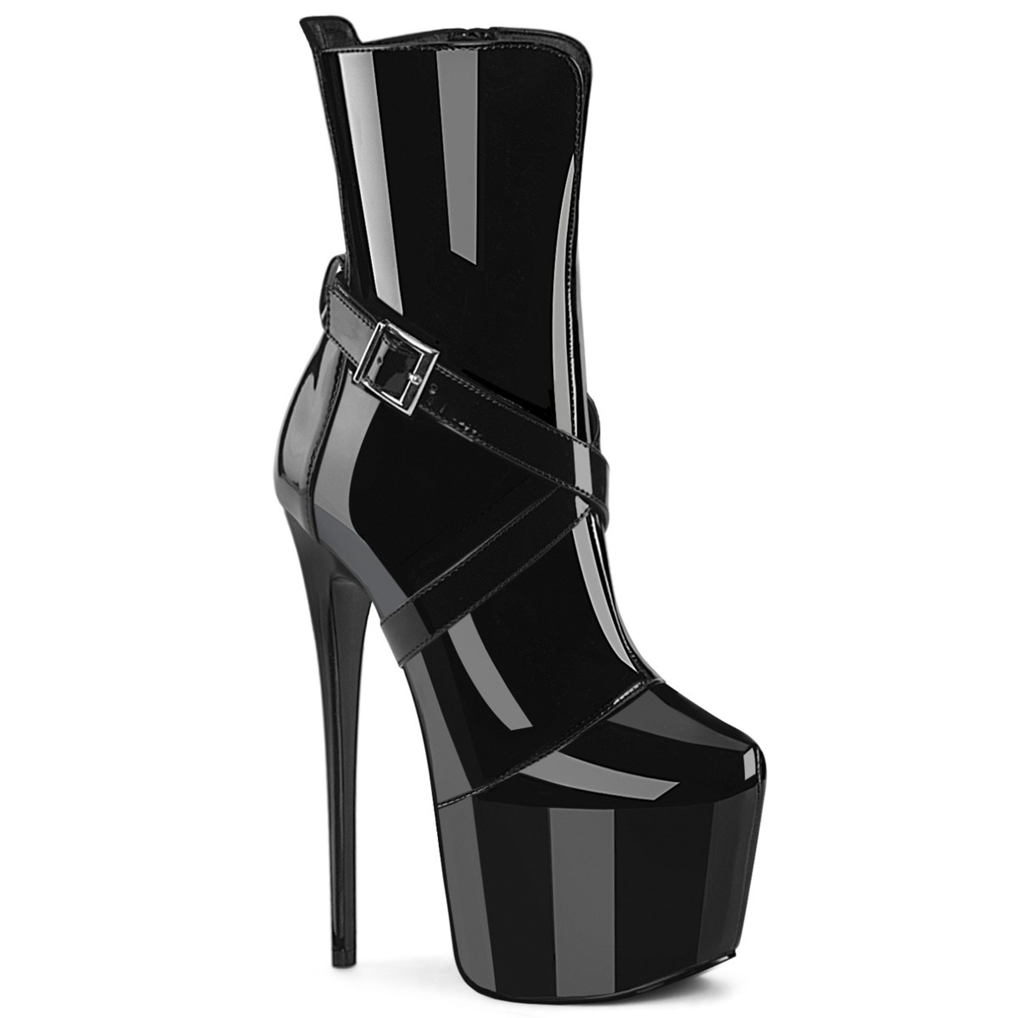 7" (178mm) Stiletto Heel, 3" (76mm) Concealed Platform Ankle Boot Featuring Removeable Crisss Cross Strap, Inner Side Zip Closure. Shaft Height: Approximately 6 Inches (16cm).