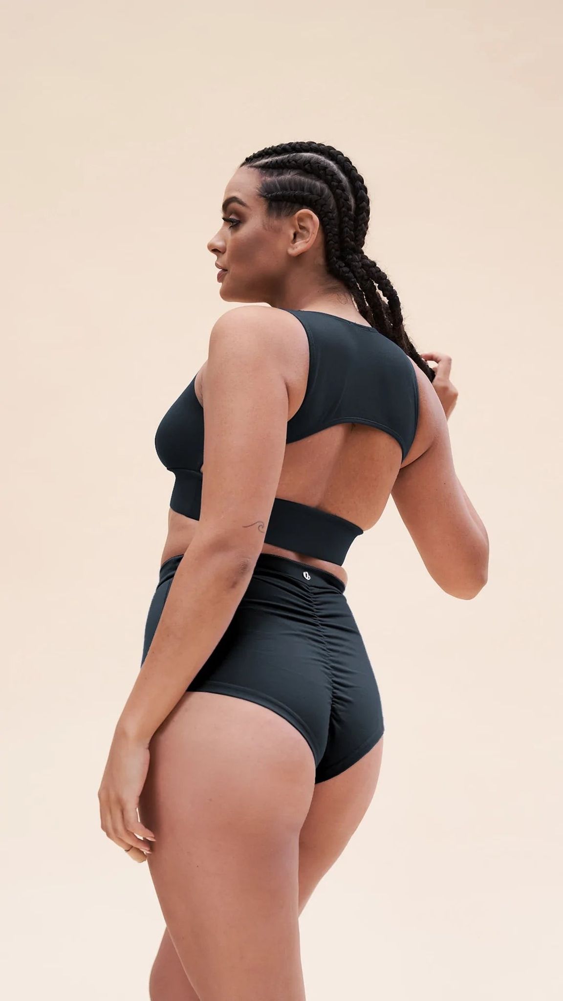 LUNALAE Courtney V Neck Top Recycled BLACK