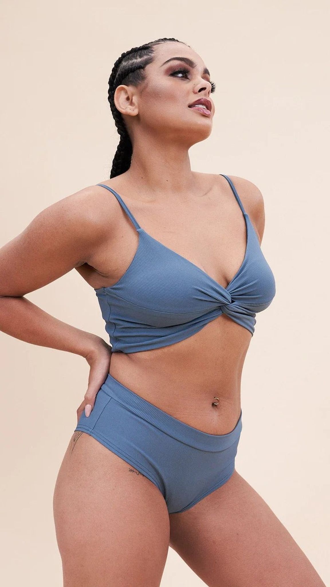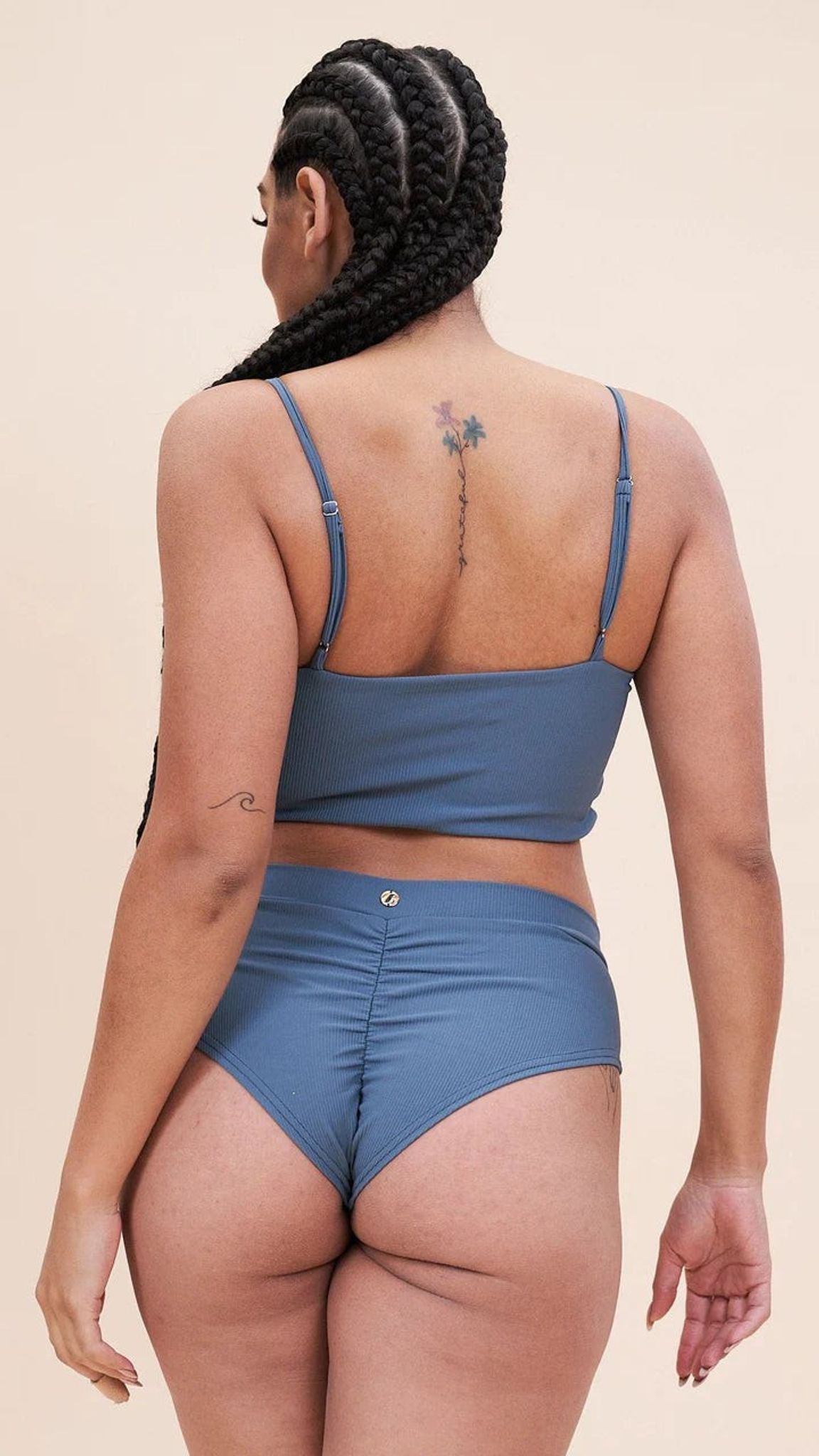 Features Basic low waist shorts design Scrunch bum gathering Pairs perfectly with the Harleen Twist knit top Soft ribbed fabric Recycled fabric Also available in black and steel blue