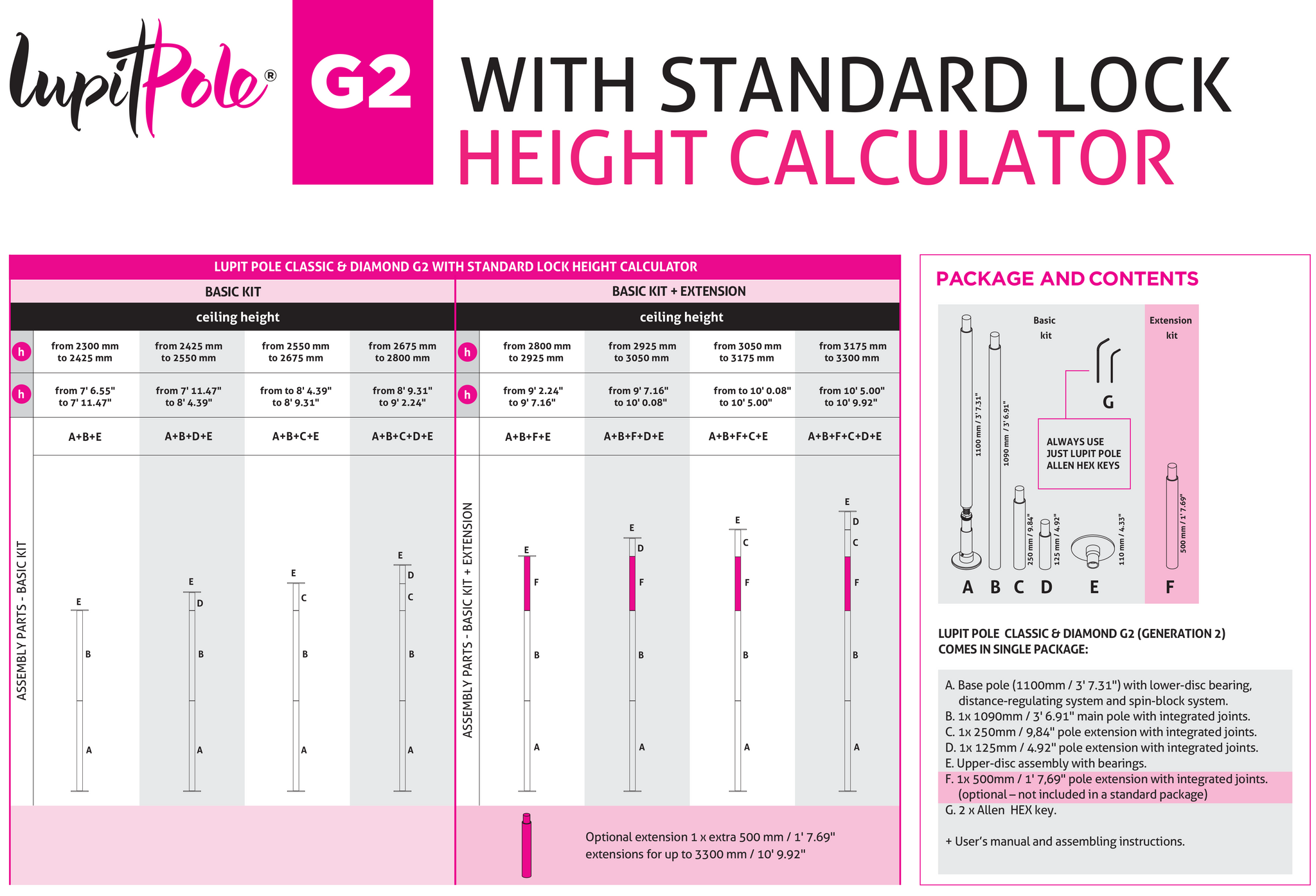- Basic kit + one 500mm extension can also fit the ceilings up to 3300mm