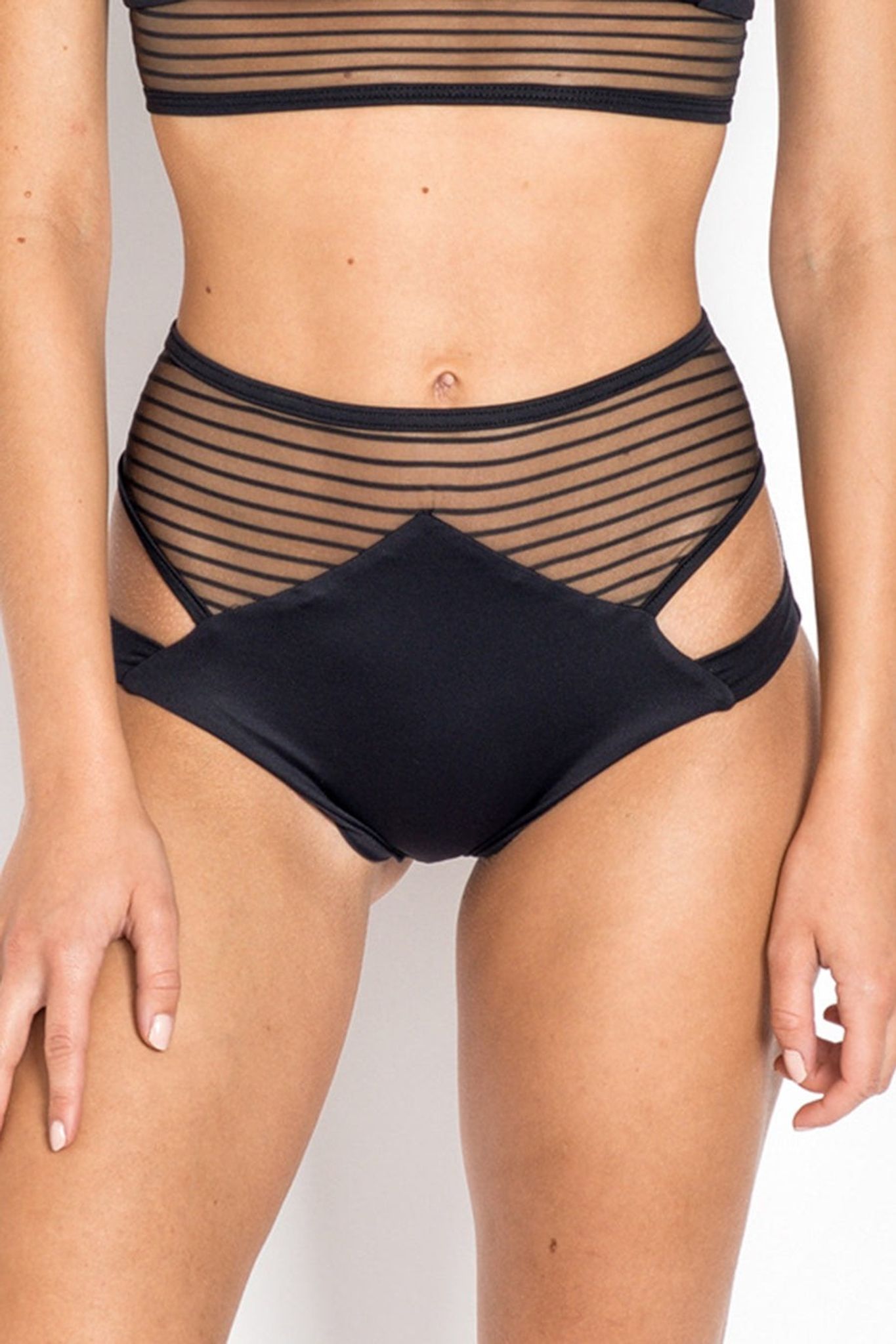 High waist, stripe mesh, and open sides are just the highlights of this bottoms with sculpturing effect. Dance, stretch, swim or move in any other way you desire, MIA is a piece that will accentuate your movement!