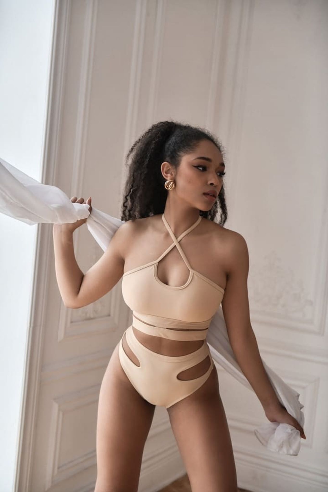 The Almanara top is a gentle and comfortable top for pole dance, go-go, fitness. The model is made of soft measure, it is smooth and good air permeability. The top is decorated with a belt that creates a stylish accent on the waist. The chest is emphasized by straps imitating a neckline.” drop “” on the neck. The straps are equipped with metal adjusters.