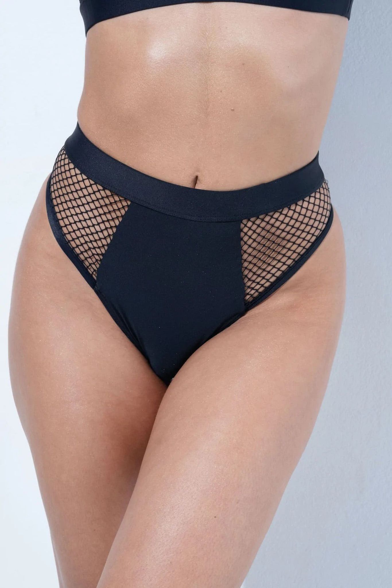 Hecate-botten är den ultimata showen, eller ännu bättre, hjärtstopparen. Hög midja och högt skurna ben, skapade i slät svart lycra och sidor i mesh framtill. Dess bakdel är att dö för, den har en snål täckning och mjuka remmar som kramar om din rumpa. Denna design skriker lägg i kundvagnen!