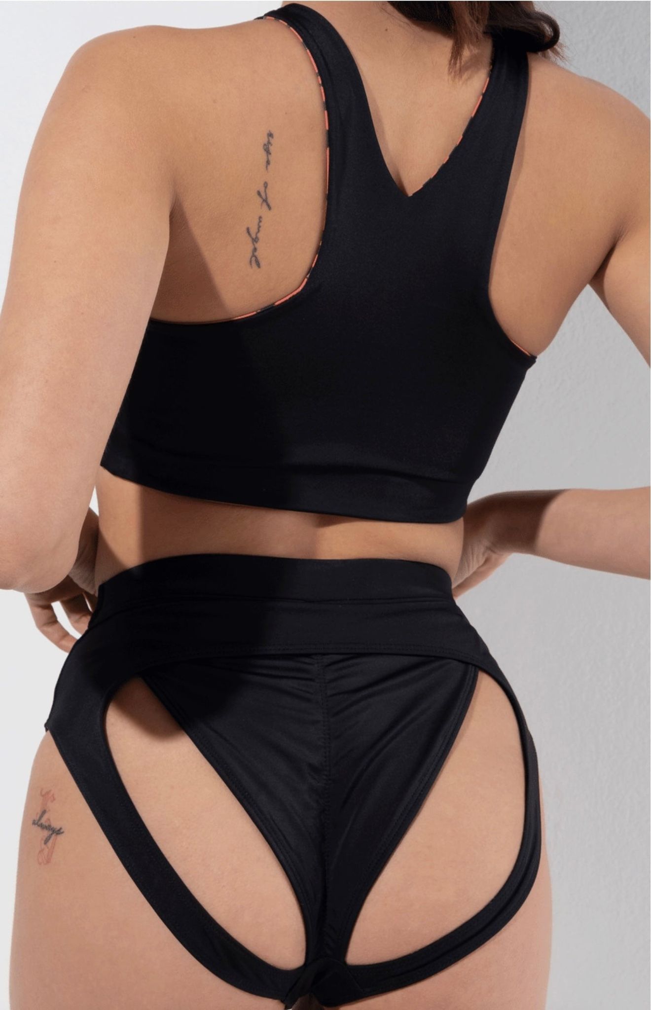 The perfect combo of sexy and flattering is here!!! Meet the Lover sports bottom, a high-waisted and high-legged bottom made from luxurious silk-like fabric in enticing black color. Don’t let its modest front deceive you, the Lover bottoms feature a very spicy garter-like design at the back that will flatter your booty like nothing else.