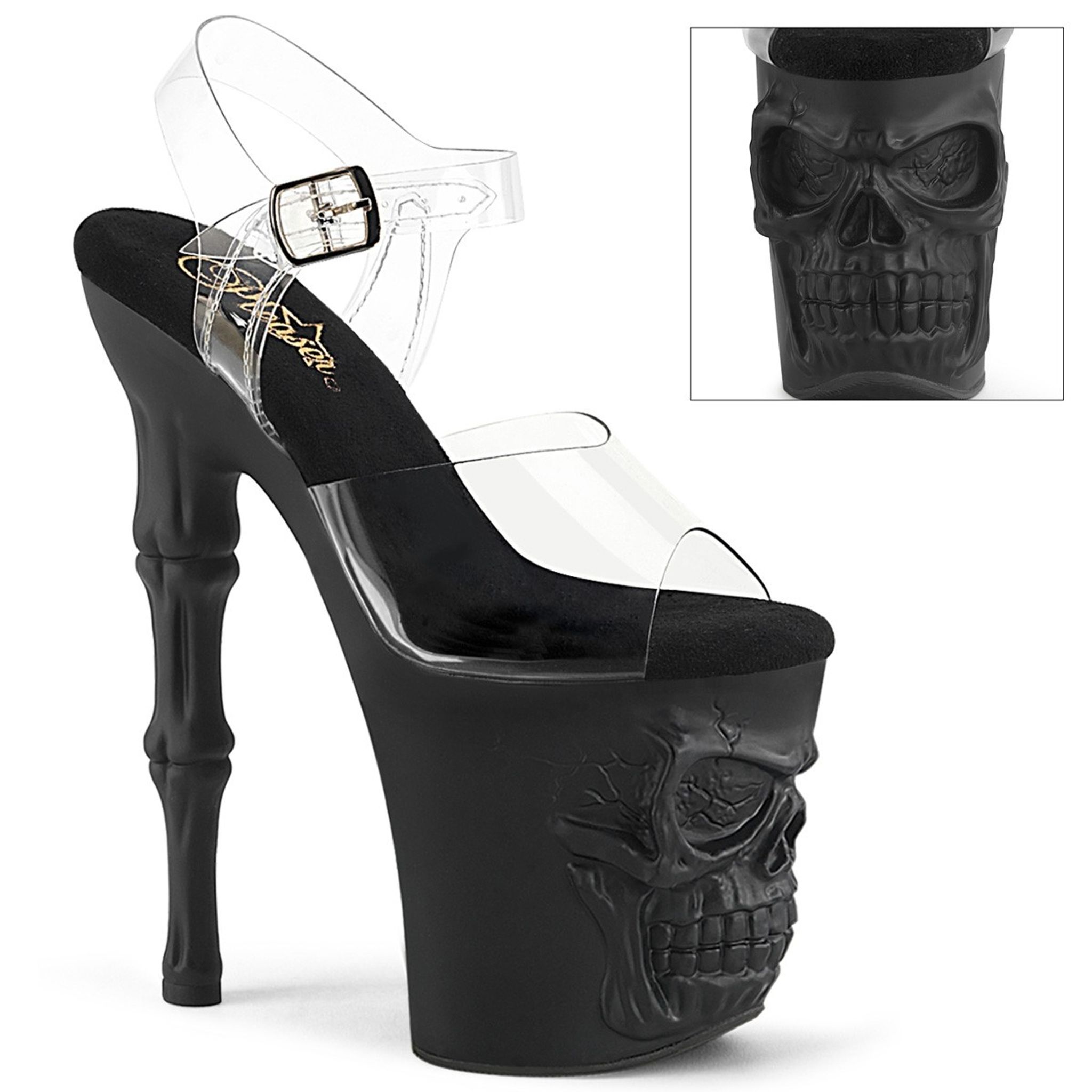 8" (200mm) Finger Bone Heel, 4" (100mm) Platform Ankle Strap Sandal Featuring Skull & Bones Platform Bottom