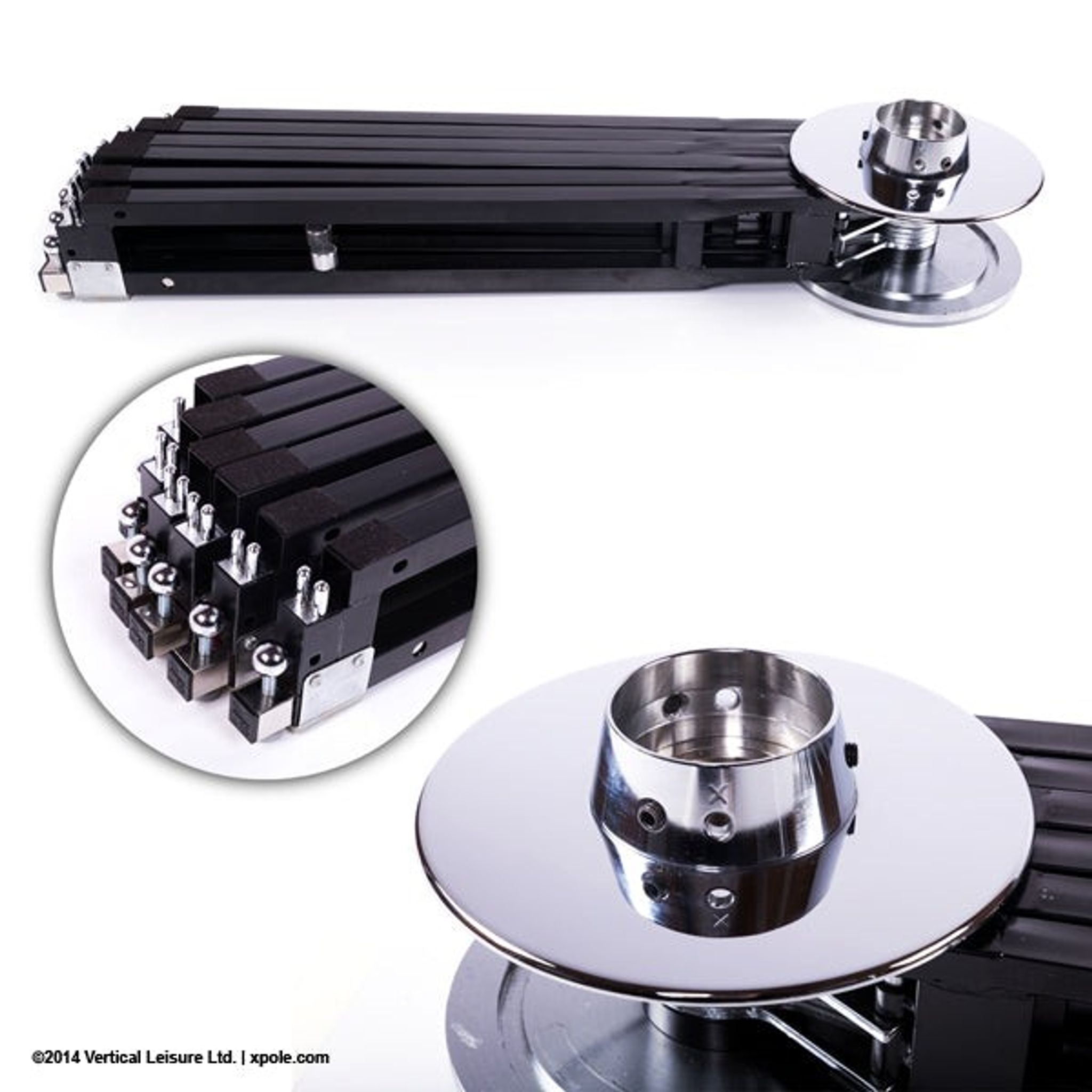 X-STAGE höjddiagram 1,6 m palldiameter 110 mm pallhöjd Tillgänglig i krom, rostfritt stål, mässing, silikon och powder coat. Spinning & statisk som standard .