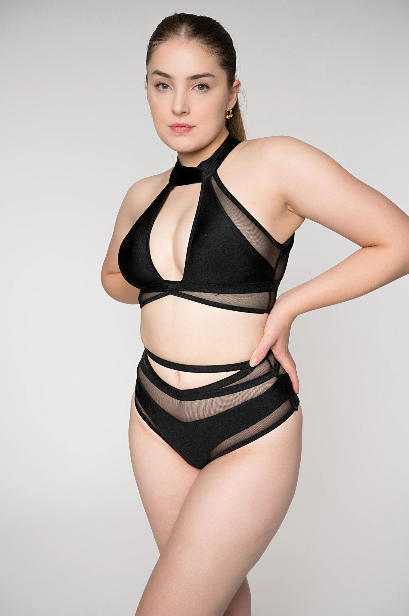 The Charlie Bottom is designed to flatter your figure while offering support and style. Featuring mesh panels that provide a striking contrast against the solid fabric, these high-waisted bottoms are both modern and sexy. The dual-strap waistband adds an extra touch of sophistication, while the form-fitting design hugs your curves for a sleek silhouette. Perfect for pole fitness, dance, or swimwear, the Charlie Bottom combines fashion and function for an unforgettable look.